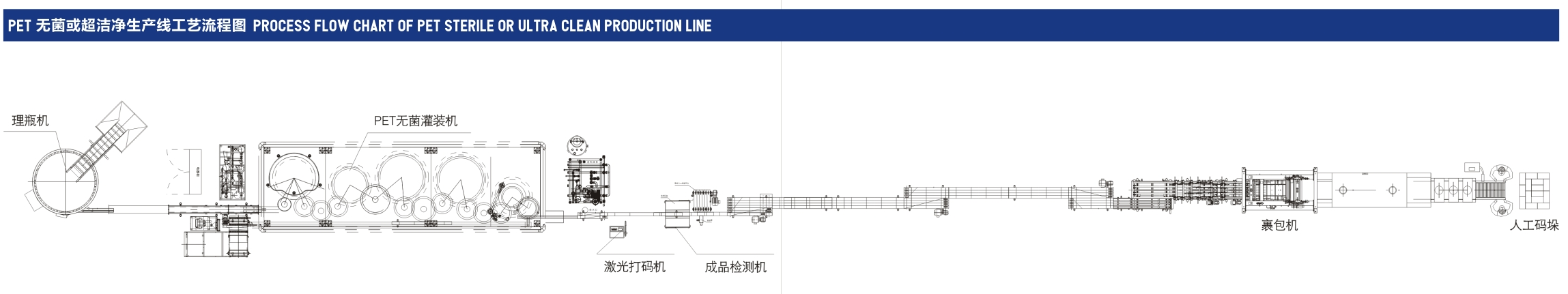 首页 - 产品展示 - 标准生产布局图 - PET 无菌或超洁净生产线工艺流程图